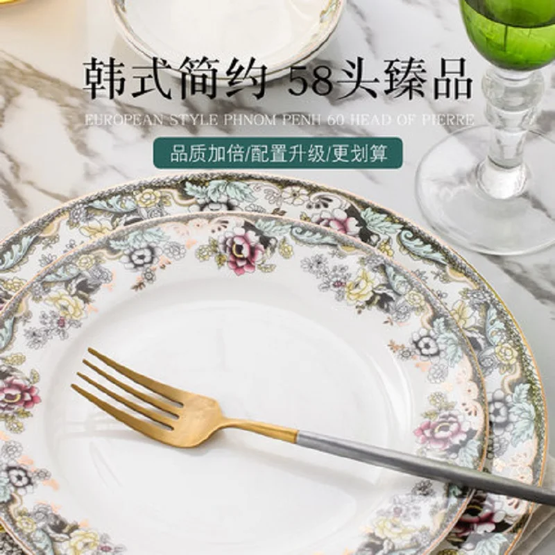 Special Offer 58PC Dinnerware Set Cutlery Dinner Set Household Korean BowlsJingdezhen Bone China Tableware Set Bowls And Plates European Style Discount 12% Today!