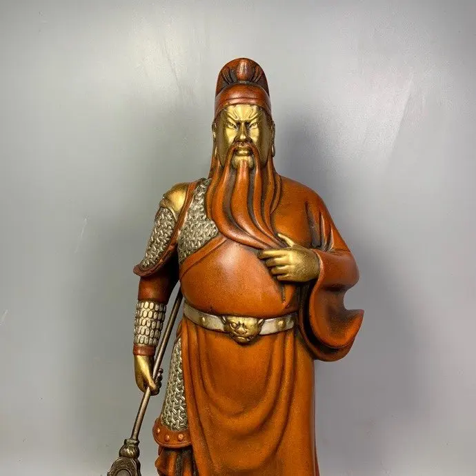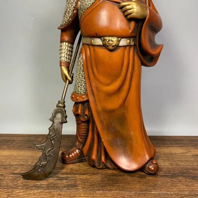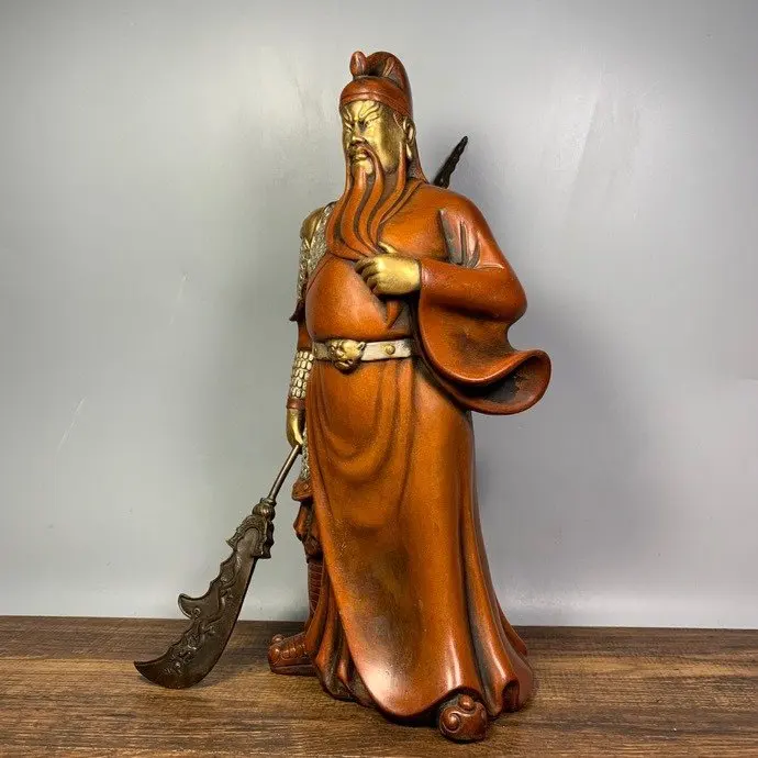 Product Name: 12" Tibet Buddhism Temple Old Bronze Gilt Real Gold Silver Guan Gong Buddha Statue Take Guan Gong Knife Incarnation Of Loyalty