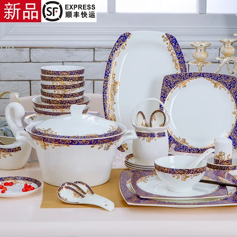 Product Name: cutlery Jingdezhen Dinnerware Set 60 Pieces Dinner Set Bone Porcelain Tableware Set Korean Household Ceramic Plate Set