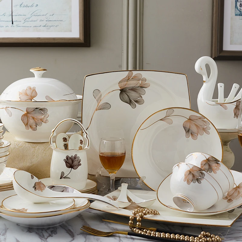 Best . (13% Off) Buy Guci Dishes Set Household Luxury Jingdezhen Ceramics Bone China High-end European Tableware Bowls And Utensils Cheap Online.